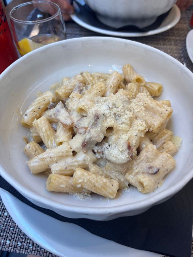 7/10Pasta was good, pizza was terrible. The crust was dense and not sure it was even cooked in a wood fired oven? And the burrata completely melted on top so it was a soggy mess. Also for a half empty restaurant don’t insist on ramming people together in tables that are only inches apart. Not a very comfortable dining experience. Tons of better restaurants in Rome.