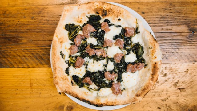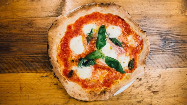 Fiordilatte italiano, ricotta fresca, salamino piccante, pepe, ombra di pomodoro e spolverata di parmigiano reggiano