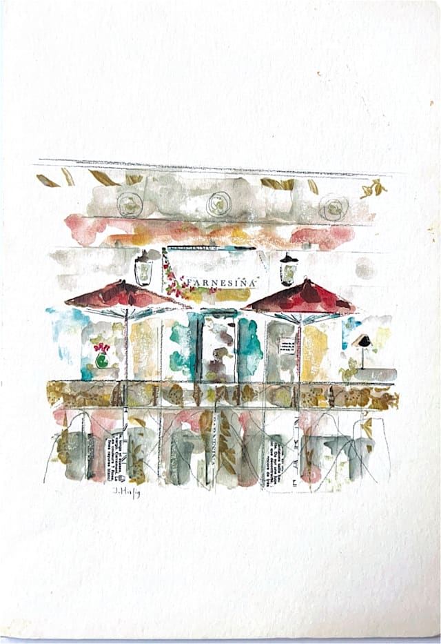 Jusqu'au pain ou aux petits biscuits servis avec le café, tout ici est fait maison. Le menu change chaque semaine, si ce n'est quelques invariants. La Farnesina est une institution parisienne depuis vinght cinq ans. Tables de marbre, verrerie de Murano, sol de travertin, fresques de l'artiste Antoni...