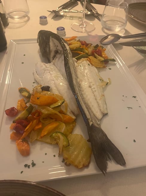 The restaurant is lovely a bit deceiving from the outside and one road back from front beach road but a few minutes from our hotel Grand Riviera. Our party of 9 all enjoyed the food the sea bass fillet steak lamb tuna all delicious as were starters and deserts. The waiters were very helpful and the Sommelier knew the red wine we needed to go with fish and meat it was just right and not too expensive would definitely recommend