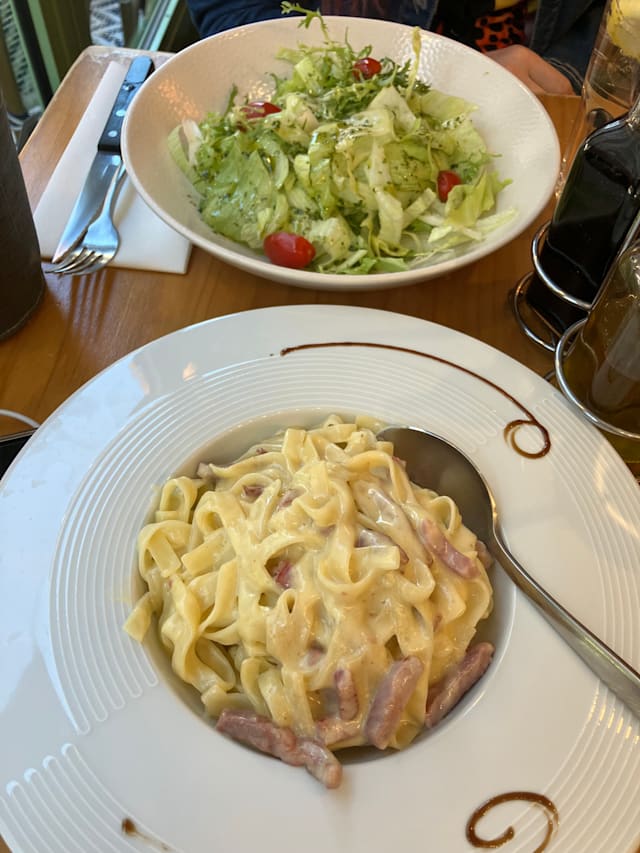 10/10We’re not overly fond of authentic French cuisine so this place was perfect. The menu was in English and French and there was a lot of variety. We ordered 2 pasta dishes - Al pesto and all’ amatriciana - and 2 pizzas which were all delicious and plentiful. We also had the Greek salad which was nice and fresh. I think this place is family run. The main guy was very friendly and spoke English well. He was very helpful in suggesting beers to drink. The restaurant itself is big compared to the other restaurants we’ve been too. I highly recommend this place. My kids want to no back tonite!