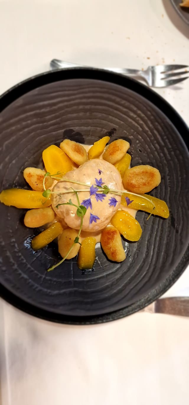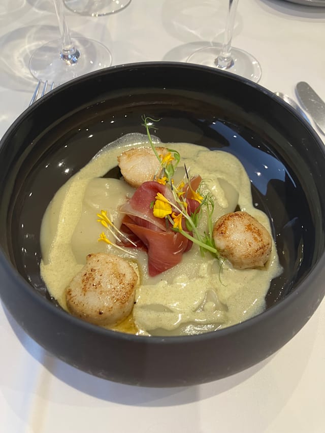 Noix de coquilles st jacques coulis de potimarron, poêlée de cèpes des Vosges