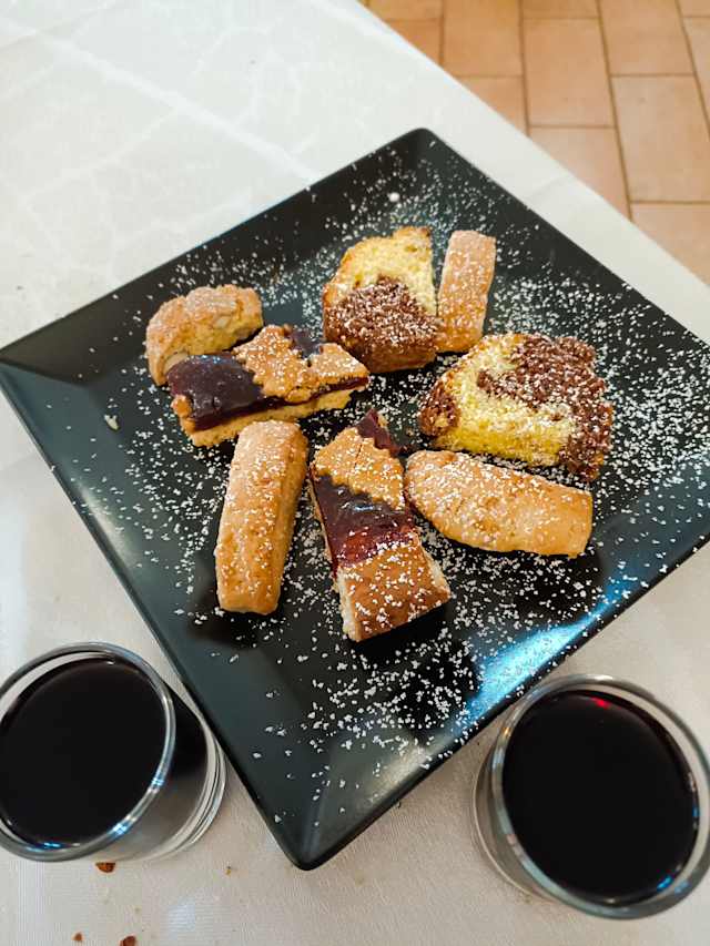 - Crescia con salumi e formaggi, erbe in padella, verdure grigliate, olive, ricotta con noci, pere con formaggio e miele