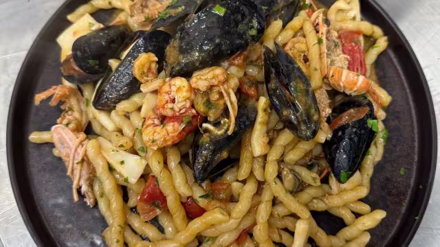 - Passata di pomodoro, calamari, cozze, gamberi, vongole aglio, prezzemolo