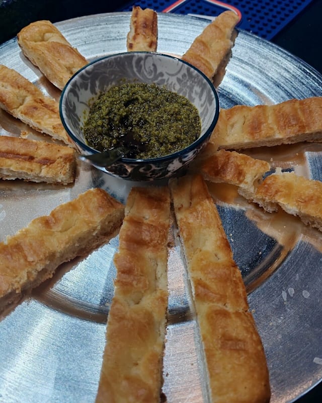 - Mozzarella di bufala, crema al pistacchio e mortadella