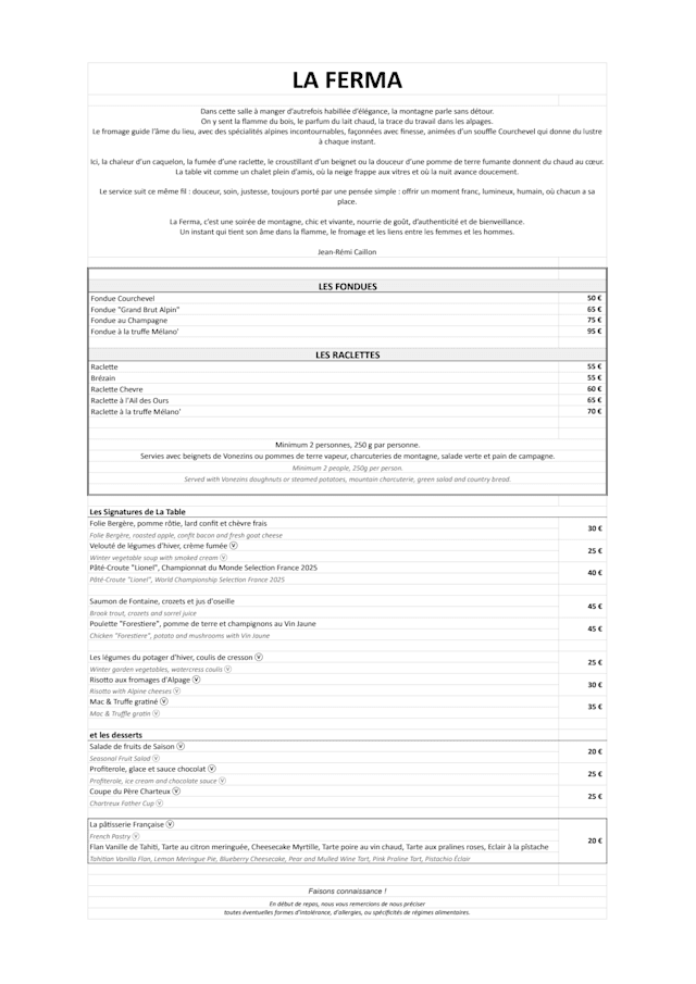 LA FÈRMA is identified as offering french cuisine.