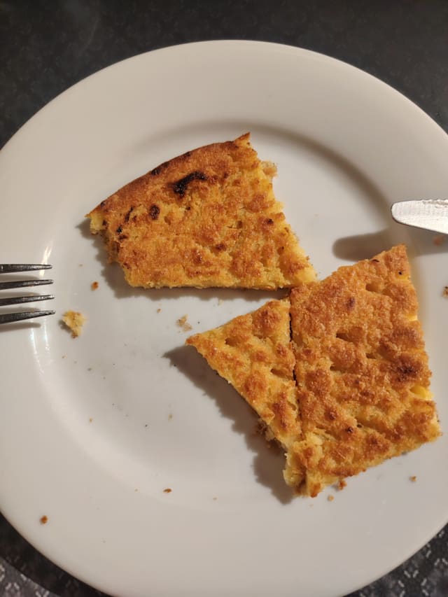 Frarinata is a thin, oven-baked pancake made with chickpea flour, water, salt and peanut oil.