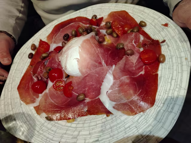 - Bufala o burrata, parma, pomodorini, olive, basilico