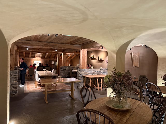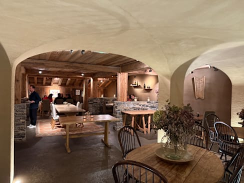 10/10Once you enter at the hotel and the restaurant you feel the warm and welcoming atmosphere. A sense I will never forget. The rustic materials, warm lighting, candles and friendly staff make the perfect combination. As for the food we enjoyed every dish. The vegetable risotto was fantastic, the fondue with truffle was exceptional and the chicken with pasta was my favourite. one. A big bravo to each one who makes this restaurant extraordinary. Thank you