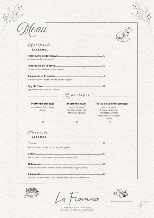 La Fiamma is rated 8.7/10.TheFork users have rated accordingly in the following categories: