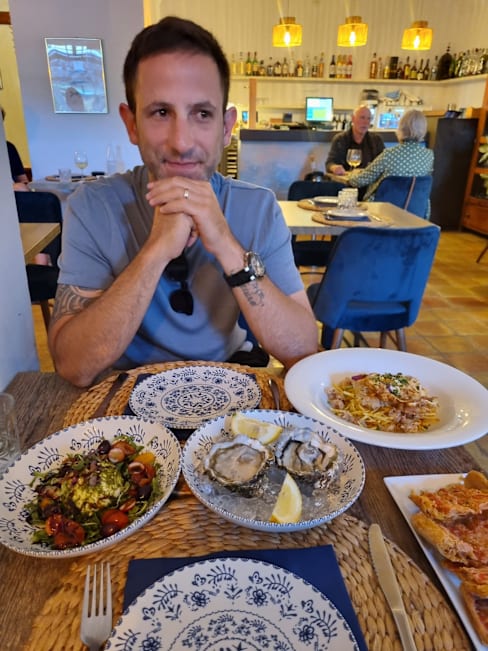 7.5/10The menu was great for lunch, plenty of variety and well priced. Fresh ingredients, well cooked. The courgette salad was delightful and the seafood rice was a real hit. Lovely setting, on a tranquil terrace. Waiting staff were pleasant and informative but went missing for periods and service was generally slow. But not a major negative. Would definitely come again when in the area.