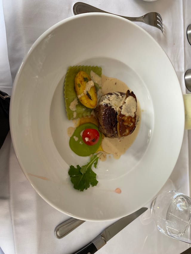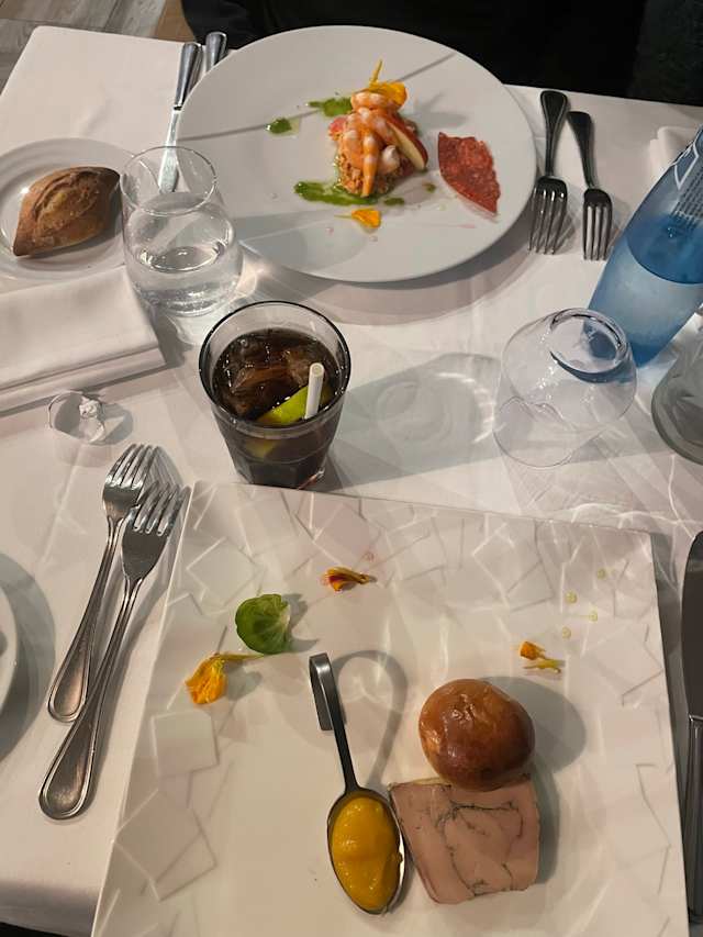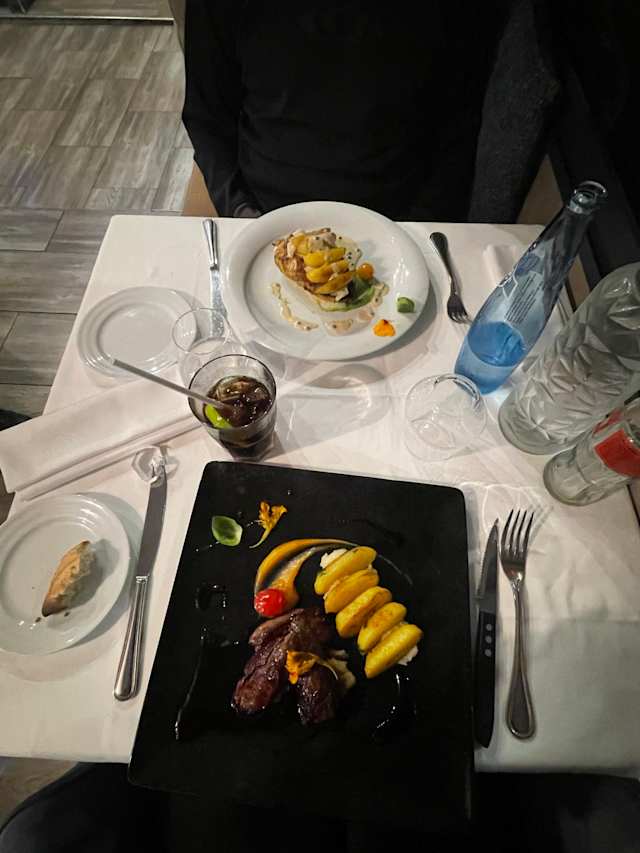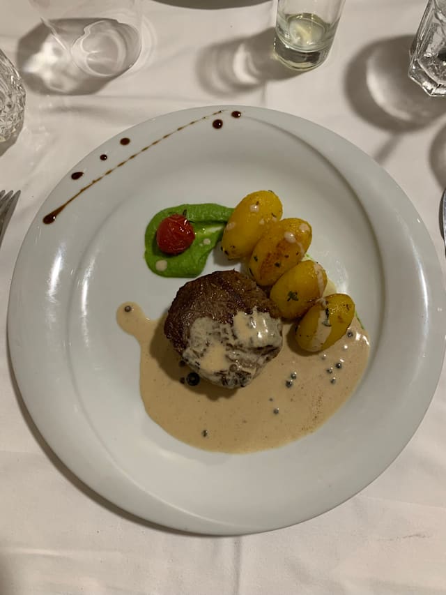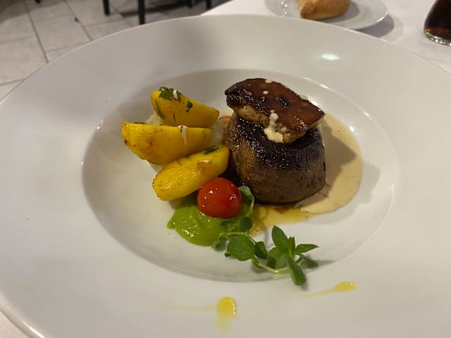 3.5/10the waiter was 15 years old ! brought 3 times the wrong food in the end the meat was carbonized.drop the bred thongs on the floor and pick the bred with that thong without cleaning it. try to open the bottle of wine with his fingers because couldn't figure out the corkscrew.He didn't know any of the dishes couldn't explain it. ex: the steam vegetables are carrots and cucumber ! didn't tell us Rossini was with foie gras. I do not blame the waiter but the owner who should have been there and supervised.