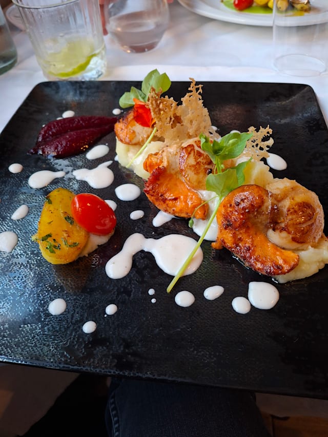 8.5/10Good decor, pleasant, but not extensive menu or wine list, very well cooked food ( we had fillet-steak and st Jacques) . On the downside, the restaurant is located on-a busy road and noise from the traffic is a little distracting when the windows are open on a hot evening.