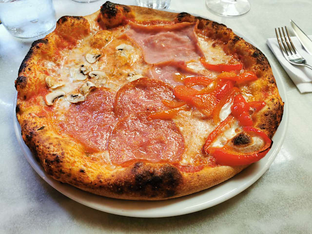 9/10Excellent pizza, real Italian style. Served quickly and with a good glass of Italian wine.