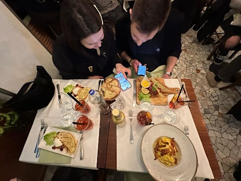 3.5/10Rude. On arrival we were left waiting whilst they found our booking - she just walked away from me and palmed me off on her colleague in a dismissive way. We were then wedged In the corner with my back directly in line to an open door (it was cold). When ordering I asked for a lemonade/7up/sprite/coca cola (all 4 of these options) and she laughed and started talking to the table next to us where they then laughed and had disapproving looks - as if they haven’t heard of a worldwide brand like sprite?! I ended up just asking for still aqua. We both felt extremely uncomfortable in there as tourists and wouldn’t want anyone else to feel that way on their last night of a lovely holiday. The food was okay but let down by the awful service. We left straight after our main - didn’t order starters or desert as before we ordered the main we knew we didn’t want to be long.