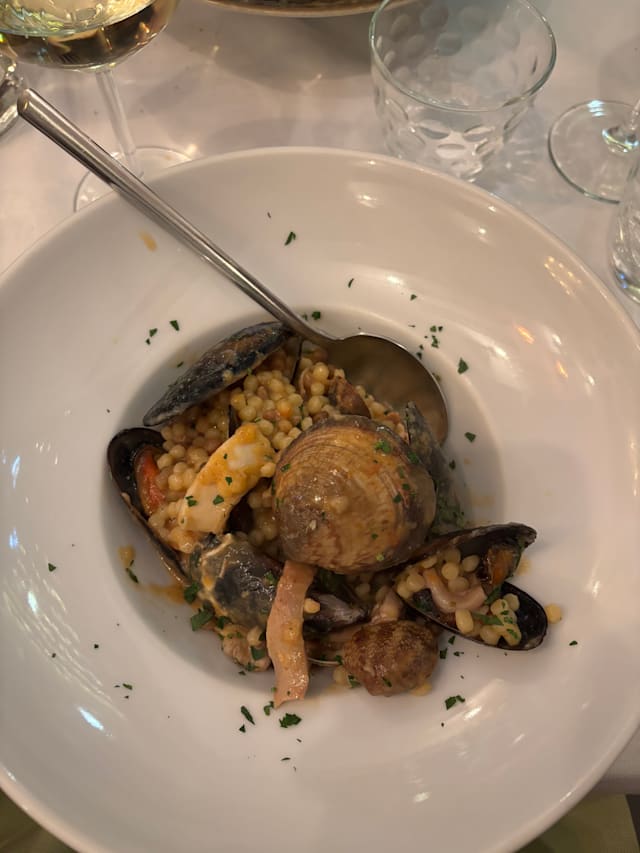 9/10This is the second time we had dinner at la Foglia and it was better than the first one! The Dadolata of salmon was excellent, like the other starters. We tried the mussels in chickpeas sauce and they were absolutely delicious, the crostini with sauce were lipsmacking good! The swordfish also well cooked but the best dish of all were the prawns rolled in pancetta: fresh, juicy and delicious. We also recommend the Gewurztraminer in their wine list, very good price to quality. We'll keep going back!