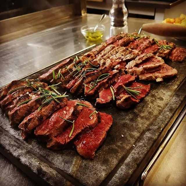 - Tagliata di angus, filetto di maiale con sale nero, tagliata di cavallo e costata di manzo. (circa 1,8kg di carne) consigliata per almeno tre persone. Con sale aromatico