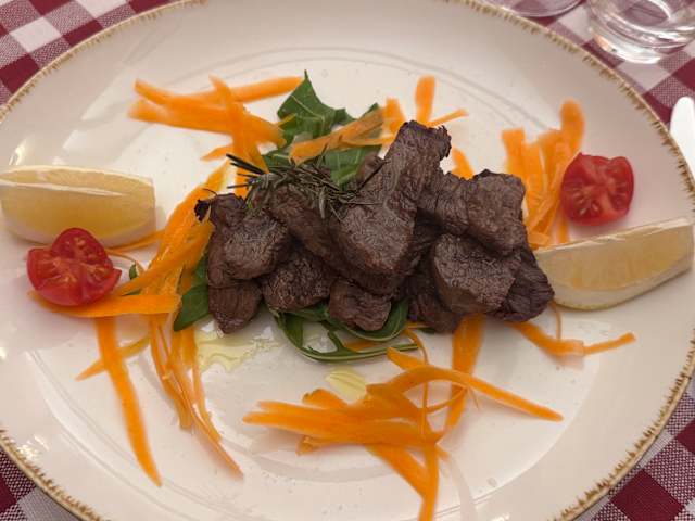 - Carpaccio di manzo con rucola e grana