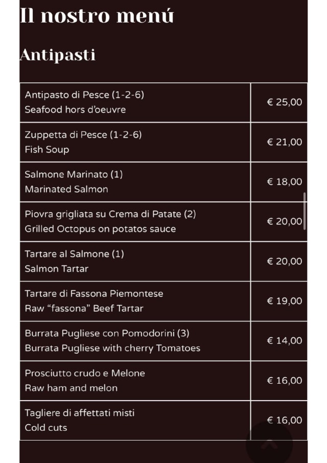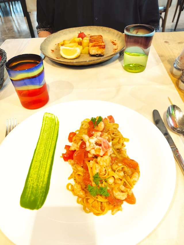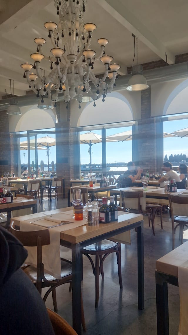10/10The perfect setting on Murano - 2 minutes from the Colonna stop and jutting out into the lagoon, the restaurant is airy and bright. The service is welcoming and professional. The food was well cooked and delicious. We had the antipasto di pesce - a traditional sampler of local fish dishes - which was excellent, followed by a salmon and branzino. The prices were typical for a tourist destination like Murano, but not outrageous. €30 for the antipasto and mid €20s for the fish secondo dishes. We had a bottle of Soave, which felt expensive at €49 when we had had a similar bottle in Mestre for €18. But you have to expect bigger markups on the bottles, and we could have chosen a mezzo litro of house wine at €12. In summary, beautiful location, great food and excellent service.