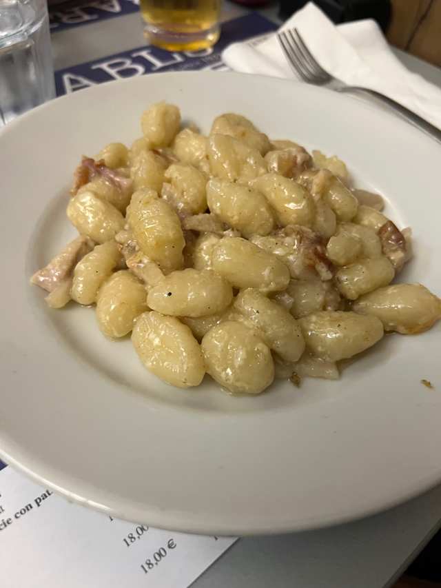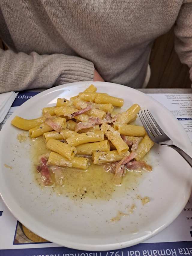 9.5/10first of all. its important to know that they charge 3 eur per person coperto, which is unusual in Rome and i am uncertain if its even legal since i looked it up and seems to be banned by law. However, the staff was transparent about it from the start, which is a plus. we had cheese platter, gnocci quattro fromagio and carbona,- all very tasty. But the house wine was horrible. Tasted like the 1EUR wine tetra pack they sell at Conad. but hey, at least it was fairly cheap (1 liter for 10EUR), and all the cheesy dishes saved it somehow. the staff was very nice and accomodating, and the service was super fast.