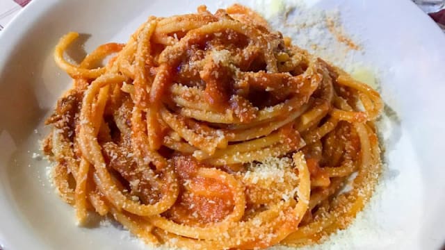 10/10Me and my partner visited this evening to try some authentic roman cuisine, and that's exactly what we got!! Even with me being gluten free! TikTok advertises tourist traps... but as tourists, places like this are amazing - value food, quality service; and above all authenticity, whilst catering for allergies!! The passion the owner has for his restaurant and for welcoming anyone to his restaurant is amazing, and he went the extra mile for us. For anyone, italian, or a tourist this is the place to go when visiting rome. Will 100% be back again!!😁