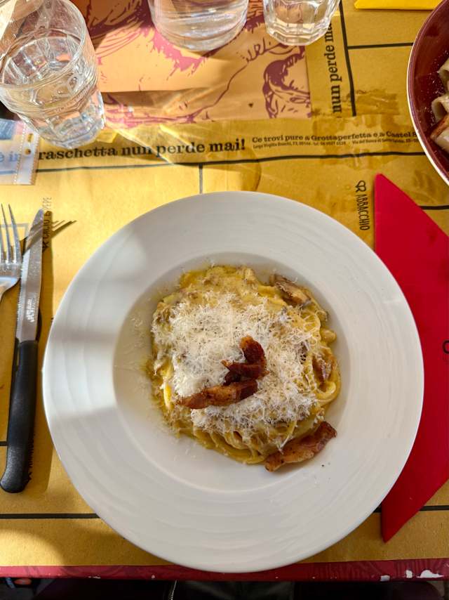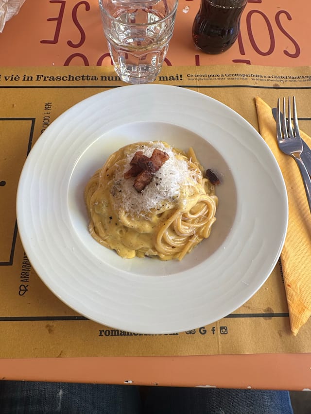 9.5/10I booked five restaurants over three days, including the likes of Felice de Testaccio and despite being in the middle of the afternoon and very quiet, was the best. Being an AS Roma fan, the Giallorossi colour scheme etc was right up my street. Staff were really friendly and helpful and the food was great. Was going down Porchetta route but was pointed towards Parpadelli with marinated wild hog/boar and was glad I did. My missus was also raving about carbonara - the best of three she had tried. Daje Roma 🤟