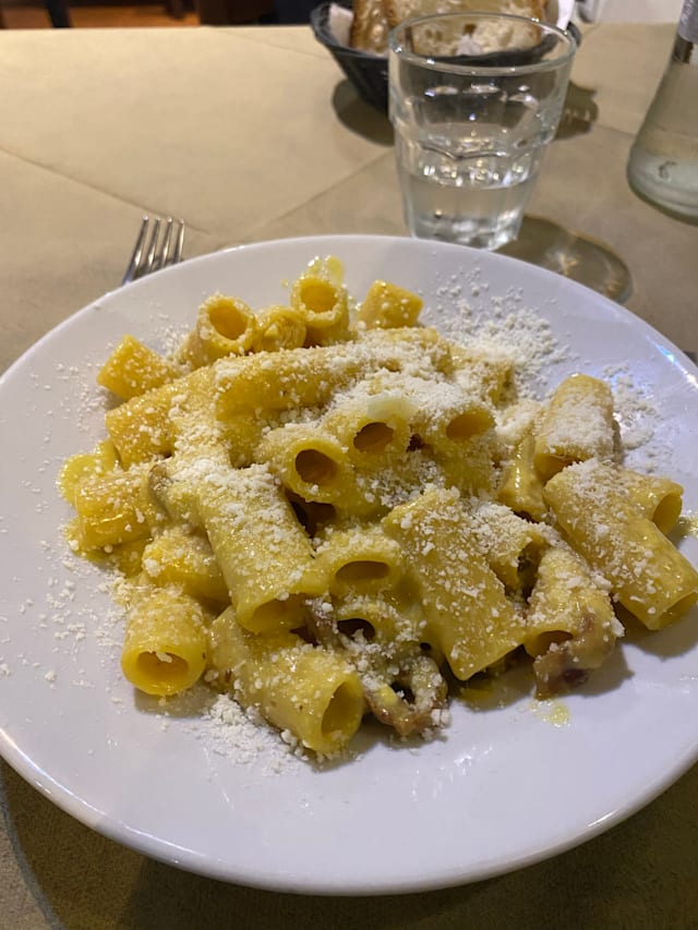 9/10We had a lovely meal here on our last night in Rome. I had the Maltagliati with truffle and bacon and it was absolutely delicious. There was construction works outside on the street, but we were seated downstairs and it was a lovely dining area. The staff were lovely. Would definitely recommend.