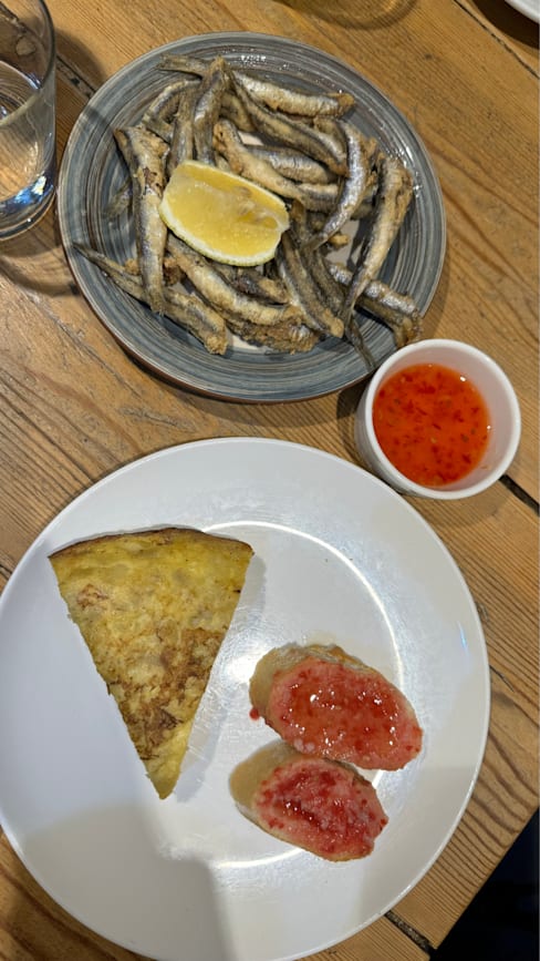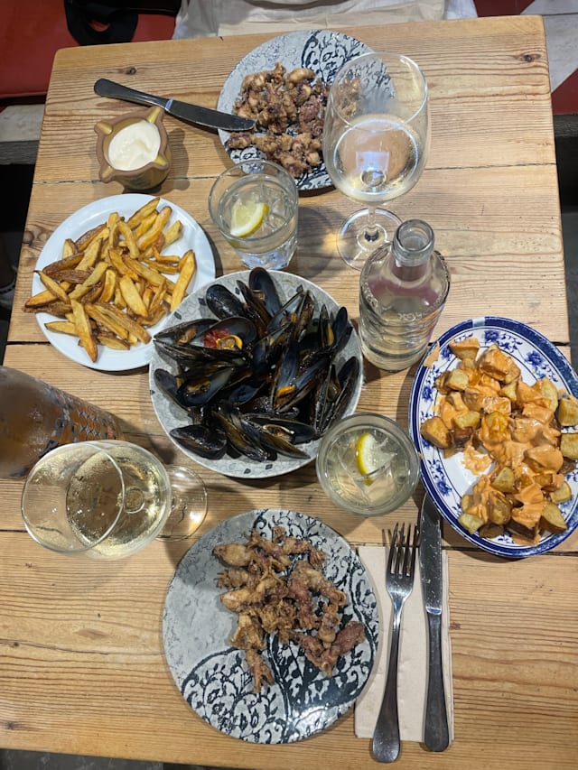 10/10Together with a friend of mine, we had an incredible meal! We ordered five different sharing plates (tapas) and it was way too much for the two of us. The portions in this restaurant and bigger than we had expected. The quality of the food is incredible. You know the ingredients are fresh as soon as you try them. Definitely recommend the Calamares Fritos, Pimientos Padrón, the Iberian Ham with Fries and Eggs and the vegetable rolls (delicious).