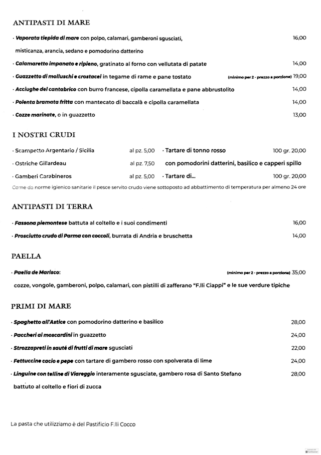 Paella di Marisco€35 per guest