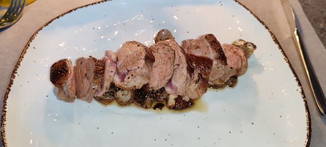 Filetto di manzo al lardo, tartufo nero e indivia arrostita