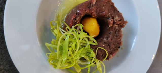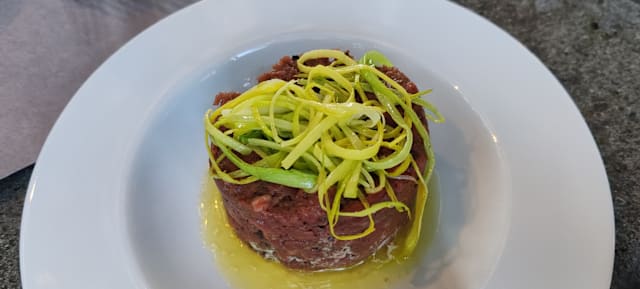 Tartare di manzo alle erbe, nocciole tostate e maionese al lime