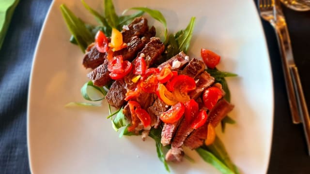 Tagliata di manzo con rucola, pomodorini e scaglie di parmigiano