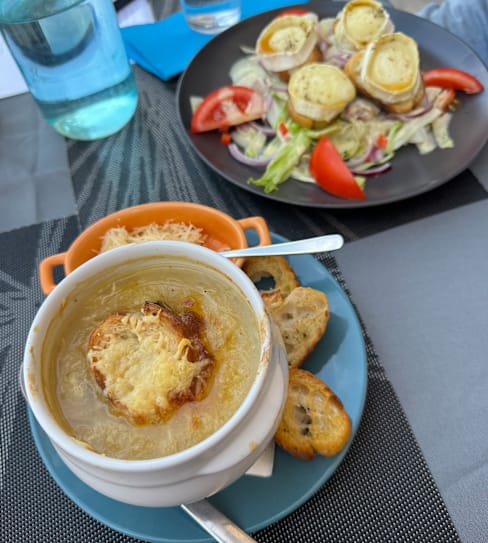 10/10Come and enjoy a relaxing and excellent meal presented by lovely people. One of the best onion soups I’ve had served so you can add as much cheese as you like and the toast when you prefer. The chèvre salad is delicious . The meat is excellent quality cooked perfectly.