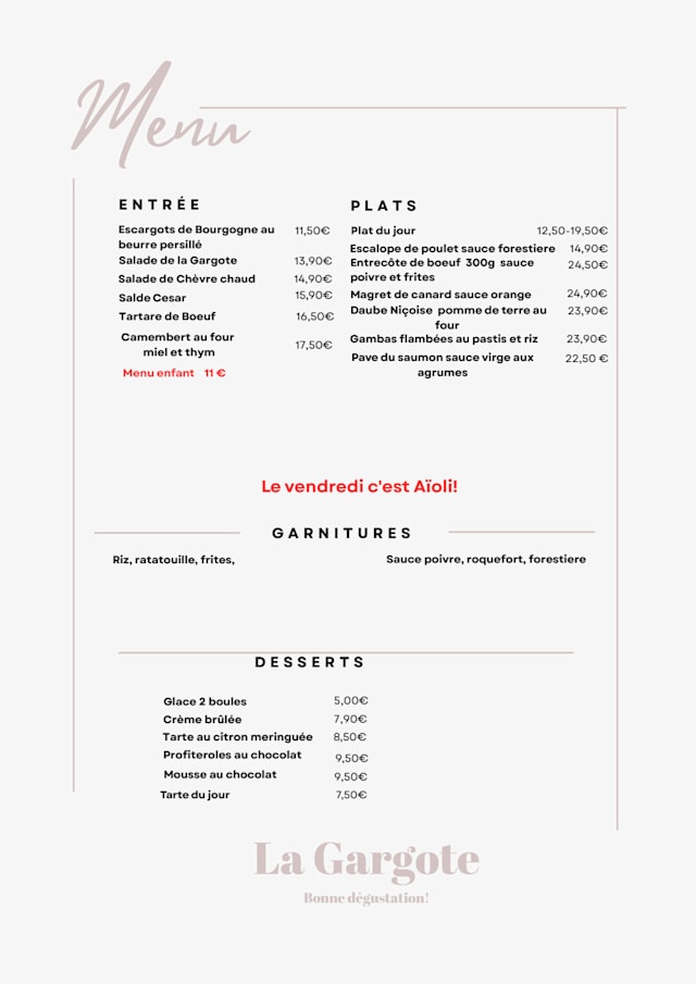 Good eveningJacques, first of all, we kept our promise to give a 50% discount, we are sorry that we did not meet your expectations, in return, when the waiter explained to you that we only have fresh entrecote, you agreed to order it, when you asked about the children's menu, you preferred to order only a small portion of french fries, and when you ordered a large bottle of sparkling water, you canceled it upon arrival in exchange for one from the tap, we dedicate ourselves 100% to the customer and we hope to do even better in the future! Have a nice evening!