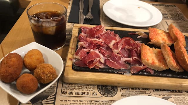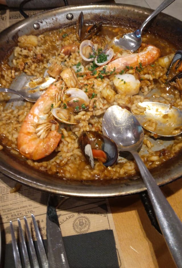 7.5/10Enjoyed our experience. Good offer when using Fork discount. waitress was friendly and helpful, food was good and the portions were good. The black rice paella was tasty however the squid and the cod contents were salty. Would return
