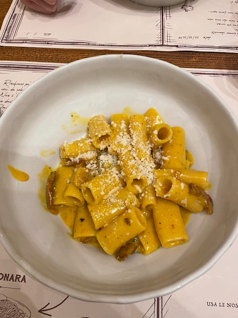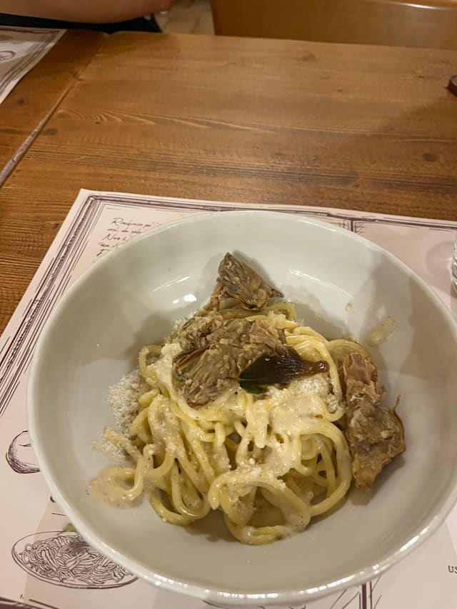 6/10Rigatoni with Oxtail was very good. Other items (zucchini flower with anchovy, ricotta with honey, rigatoni with Gricia) were just okay. Was seated in a corner that had a slight sewer smell.