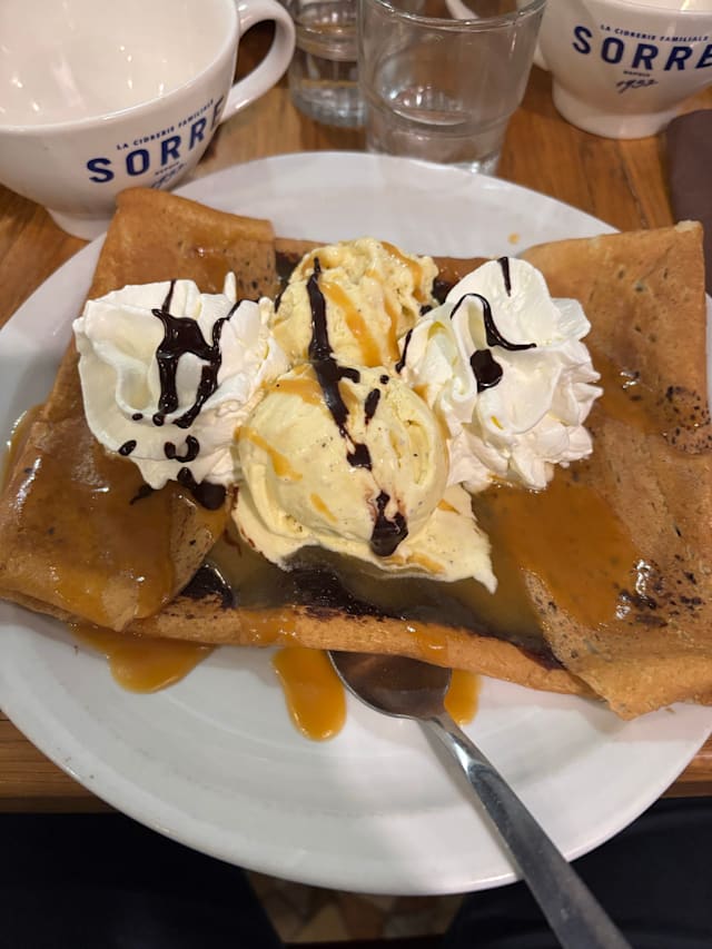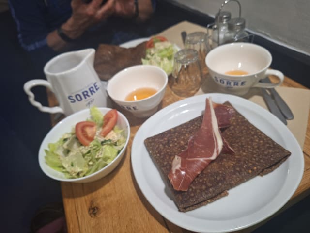 9.5/10We went there to have dinner with not too many expectations however we were quick to realise that it is a great place to eat. Food is amazing and service is fantastic. It is a small environment but cozy, and is filled with locals which means to French people their crepes are also good and that is awesome. My family and I totally recommend going there, have a Nutella crepe and a very good beer and leave a tip to the super nice waiter.