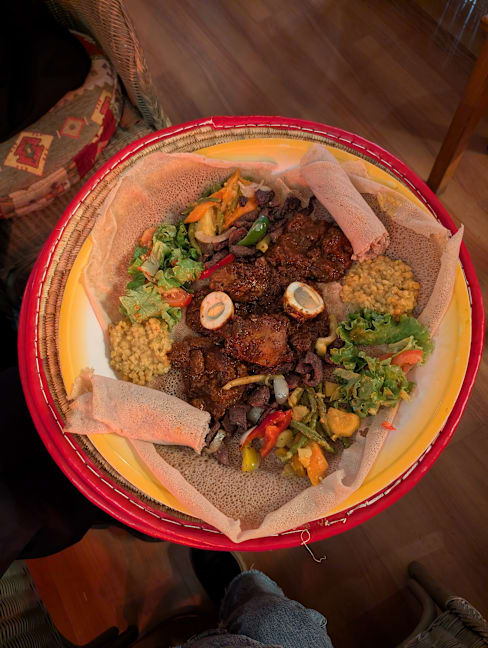 6.5/10Downsized a meal pretending to make it easier to eat by mixing meat with injera... Won't come back