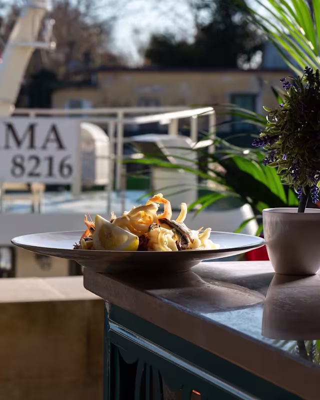 - Polpette di baccalà mantecato con cema di pecorino romano