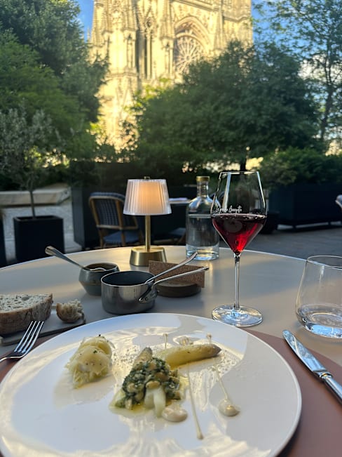 10/10+1Great food, amazing staff and a beautiful view of the Reims Cathedral. I had the 5 course menu with wine pairing, wich was a perfect choise.
