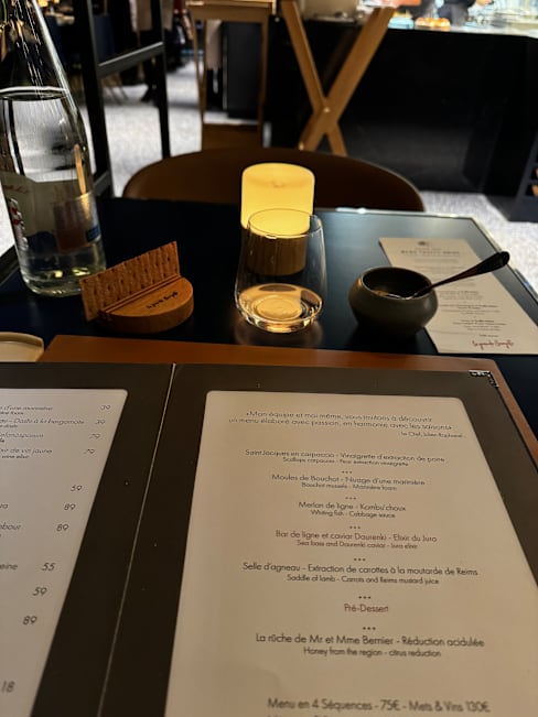 10/10We love this restaurant! Every time we are in Reims, we have to come here. The wine bible is incredible —huge champagne menu! The tasting menus range from 4-6 course, seasonal & delicious. Service is so attentive. Ambience is sophisticated & quiet. Oh, they have the Maison Bordier butter, which is such a nice touch. Attention to detail is definitely their strength. Lots of gluten free options & easily accommodated without compromising quality & taste.