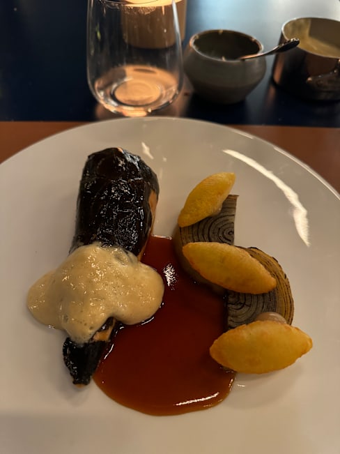 10/10Delicious meal. I had the sweetbreads which were served with a mushroom/nectarine side dish. Very inventive.