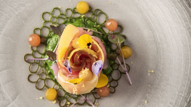 Explore the chef's selection menus with diverse dishes at fixed prices. Some are bookable via TheFork, while others are available onsite.