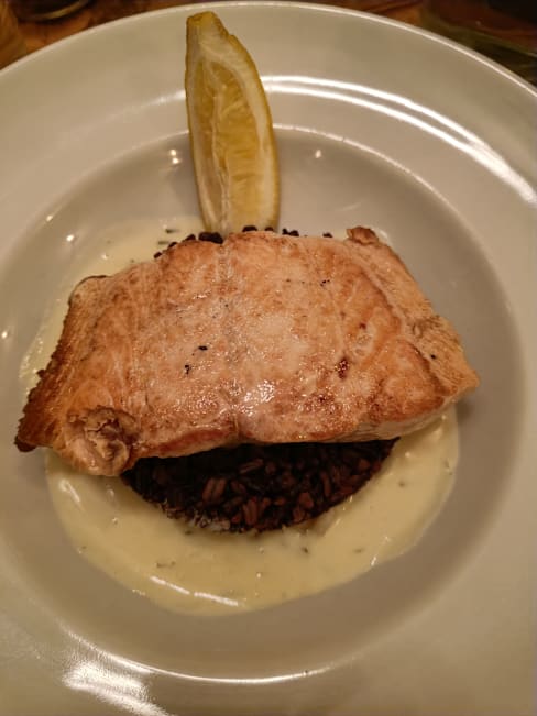 8/10The mushroom appetizer and tuna main course were delicious. The risotto with the tuna was a bit bland, but absolutely OK. My daughter’s chicken cordon blue was juicy and well prepared. The fettuccini with it, again, a little bland. A little salt and peppar fixed that right up.