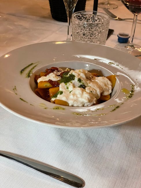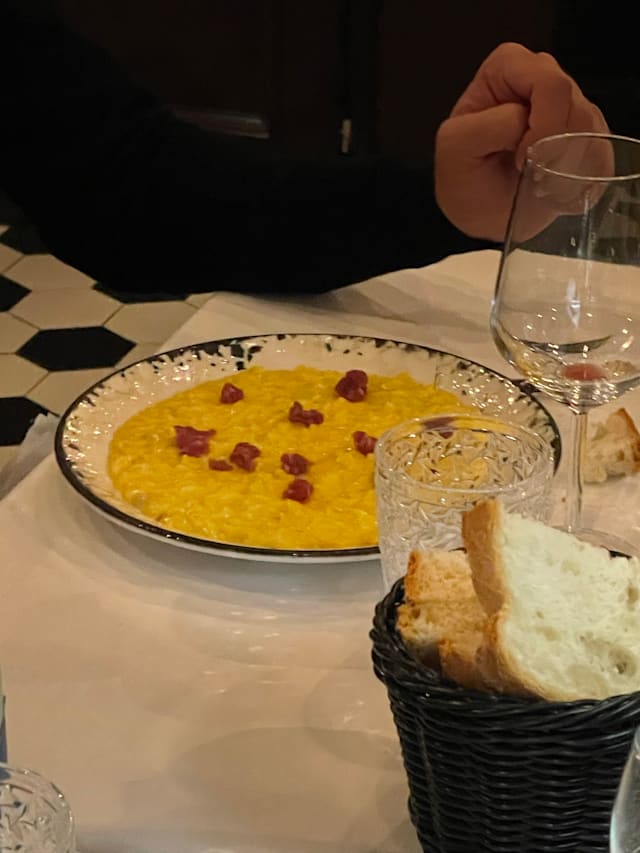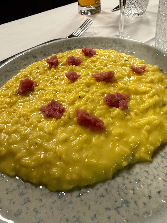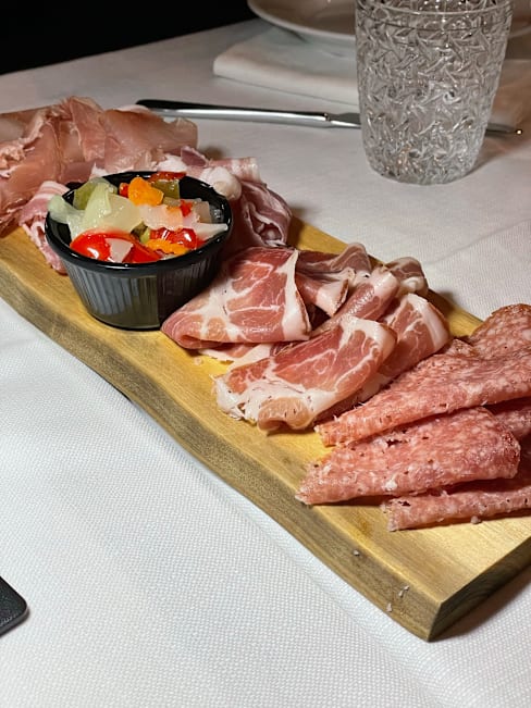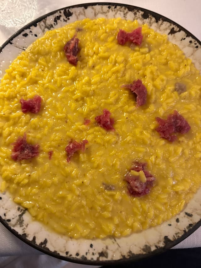 9.5/10+4Sincerely don’t know why this place was so empty on a friday night! Highly recommended 🥩 Very welcoming and helpful service. The whole place was almost just for us, in a couple of hours there were a few other tables occupied and i don’t understand why! We ate so good that this place should be fully booked. We took some cheese and meat plates, empanadas and a tartar to start. Then, risotto and paccheri for some of us and meat for the rest. While primi were just fine, the meat we took (the one for 2 people, with potato) was amazing. It was so soft and full of taste! We also took some deserts, 2 bottles of wine and shots in the end. I would love to come back for more meat 🥩