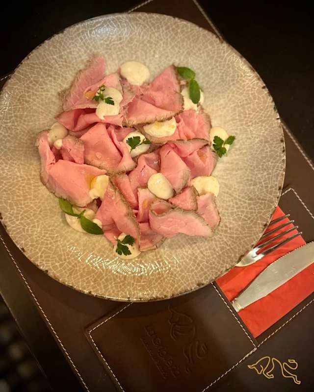 - Tagliata di fassona servita con rucola e grana (servite con salsa tzatziki e chimichurri)