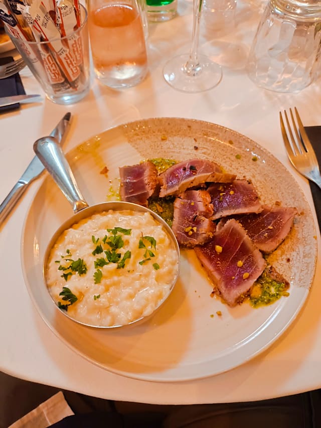 8/10The restaurant is in a gated community and offers nice local cuisine such as risotto or gnocchi with truffles, huge Niçoise salad etc. it was a lovely evening, despite a mix up with reservations. Definitely reserve!!!