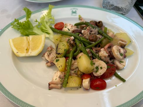 8.5/10We had dinner in Portofino and, while the food was just okay — nothing really special — the overall experience was made much better thanks to our amazing waiter. He was incredibly kind, friendly, and attentive. At one point, we asked to move to a different table, and he handled it with a smile and no hesitation, which really stood out. The location is, of course, beautiful — dining right by the harbor adds a lot to the atmosphere. That said, the prices were definitely high, probably typical for Portofino. For the amount we spent, we could’ve had a fuller meal elsewhere, including drinks and dessert. In short: it’s worth trying once for the experience and the view, but I personally wouldn’t come back. Still, huge thanks to the waiter — he left the best impression and truly made our evening more enjoyable.