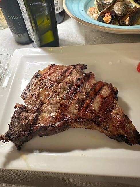 8.5/10Steak 600g well done I ordered Spaghetti Vongole Greca salad, wine, water, and cola. There was a lot of steak, so we shared it. The steak was very delicious and the spaghetti Vongole was also delicious. The salad was fresh and I was very satisfied. However, the staff did not seem friendlyㆍ
