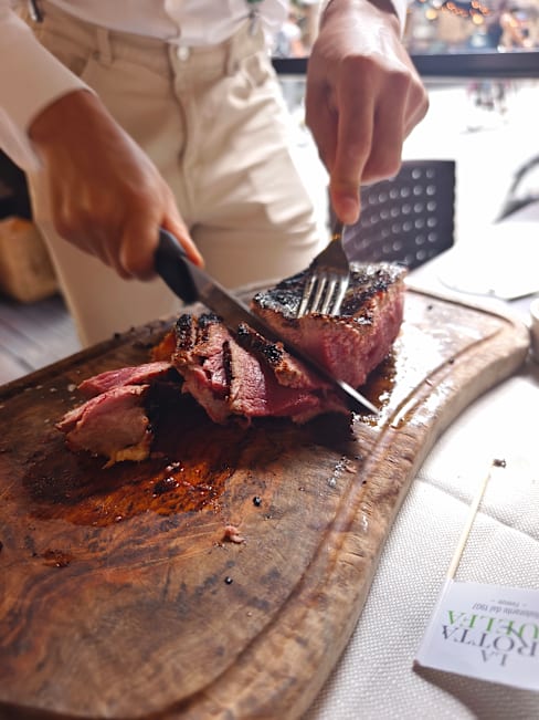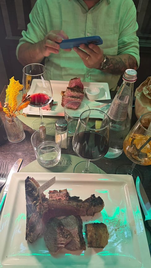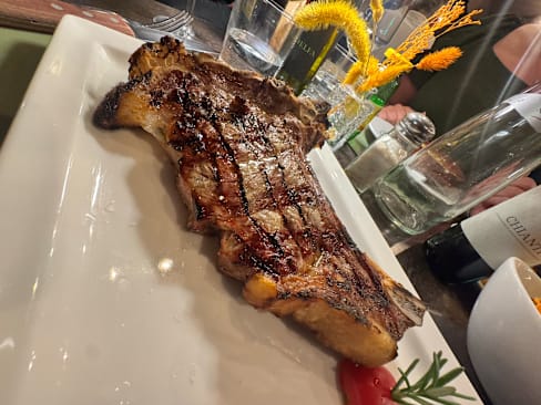 7/10Ambiance and location is good. Our steak was disappointing as it was very fatty/grissly, Not one of our best meals in Florence.